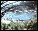 ensenada en forma de concha, rodeada de abruptos cerros que crean un